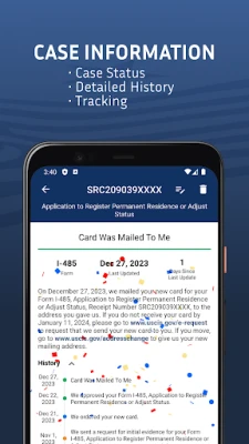 Finies les attentes passives et les vérifications manuelles répétitives. Case Tracker for USCIS vous maintient proactivement informé grâce à des alertes automatiques en arrière-plan. Vous recevrez des notifications instantanées dès qu'un changement de statut affecte l'un de vos dossiers, et serez averti de la publication d'un nouveau Bulletin des visas. La fonction de recherche vous permet de consulter aisément l'état de multiples demandes simultanément. De plus, préparez-vous efficacement à l'examen de citoyenneté grâce à notre quiz civique intégré, une ressource précieuse pour maîtriser les connaissances requises.
