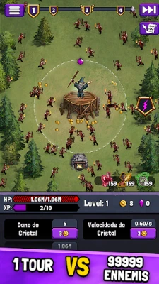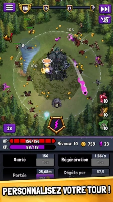 Bienvenue dans l'univers sombre de Tour de défense Idle, où vous incarnez un seigneur sorcier dont l'audace a déverrouillé les pouvoirs illimités du cristal primordial. Le trône est à votre portée, mais votre ascension impie a éveillé la fureur du royaume. Des armées se massent pour démanteler votre forteresse. Votre quête : défendre votre tour avec une stratégie imparable, écraser toute opposition et forger un empire médiéval maléfique qui dominera le monde.