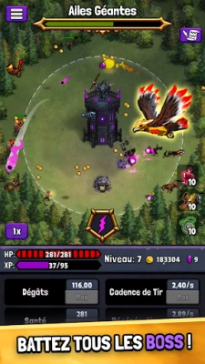 Votre empire s'épanouit grâce à une économie incrémentale, vous permettant de débloquer de puissantes améliorations qui renforcent votre position. Déclenchez des pouvoirs spéciaux dévastateurs avec des actions ciblées pour anéantir les menaces. Affrontez un bestiaire varié de plus de 30 types d'adversaires, des archers rusés aux imposantes catapultes, le tout dans un mélange parfait de fantastique médiéval et de stratégie pure. Et même sans connexion, l'épopée de votre Tour de défense Idle se poursuit, vous offrant des heures de jeu stratégique hors ligne.
