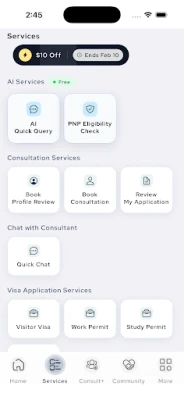 Au cœur d'Immigos bat Maestro AI, un moteur d'intelligence artificielle exclusif qui évalue instantanément votre éligibilité pour plus de 20 voies de résidence permanente, sans jargon ni feuilles de calcul complexes. Notre chatbot "Quick Query" est à votre disposition 24h/24 et 7j/7 pour répondre à des questions complexes, interprétant même le contexte de vos documents et captures d'écran. De plus, accédez à un répertoire de consultants en immigration vérifiés et agréés, avec des profils détaillés, des évaluations et des spécialités. Réservez des consultations en temps réel via des appels sécurisés intégrés à l'application, et gérez vos paiements en toute confiance grâce à une passerelle sécurisée, avec factures et reçus automatiquement synchronisés.