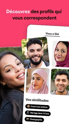 Muzz vous ouvre les portes d'une communauté vibrante de millions de musulmans célibataires à travers le monde, tous unis par la même quête d'un partenaire de vie significatif. Notre mission est de faciliter des connexions authentiques qui mènent au mariage, et nous sommes fiers d'avoir contribué à plus de 600 000 unions réussies, avec de nouvelles histoires d'amour s'écrivant chaque jour. Si vous aspirez à construire une relation durable et respectueuse de vos valeurs, Muzz est la plateforme dédiée où votre chemin vers le bonheur commence.